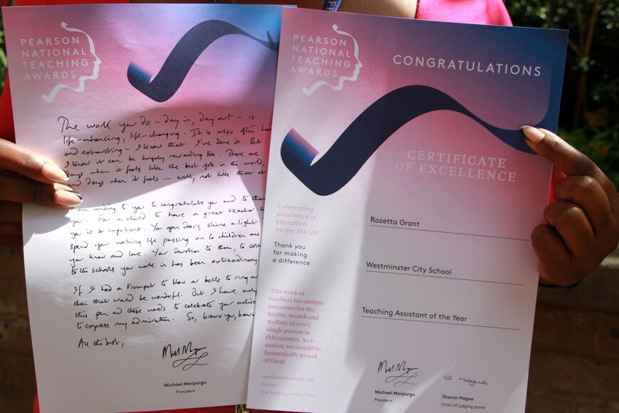 Congratulations to Ms Grant, SEND Learning Support Assistant at Westminster City School on receiving a timely certificate of excellence as part of the Pearson Teaching Awards. Ms Grant received her certificate on Wednesday 19 June which marked ‘National Thank a Teacher Day’.